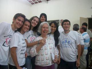 Therezinha Oliveira com jovens da Mocidade Espírita de Itapira, SP |