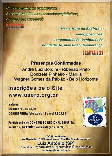 30ª. Conrespi - Confraternização da Familia Espirita Congresso Regional Espírita. Luiz Antonio, SP |