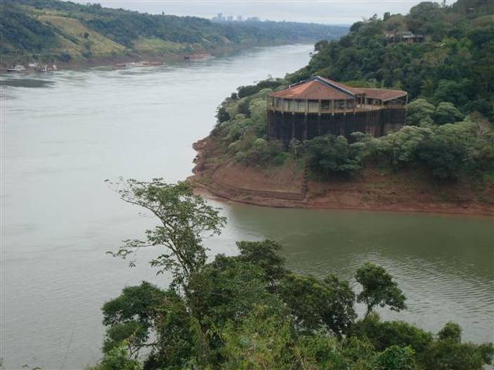 A Foz do Iguaçu fotografada a partir do lado argentino. À esquerda o Paraguai com a Ciudad del Este ao fundo e, à direita, o território brasileiro Foto Ismael Gobbo |