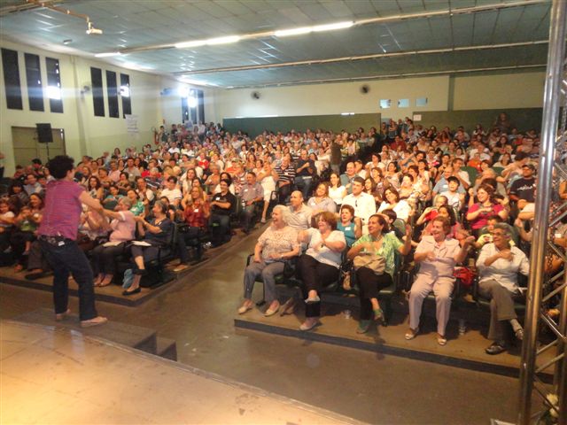 Célia Paiva, de Bauru, sempre animando o numeroso público. |