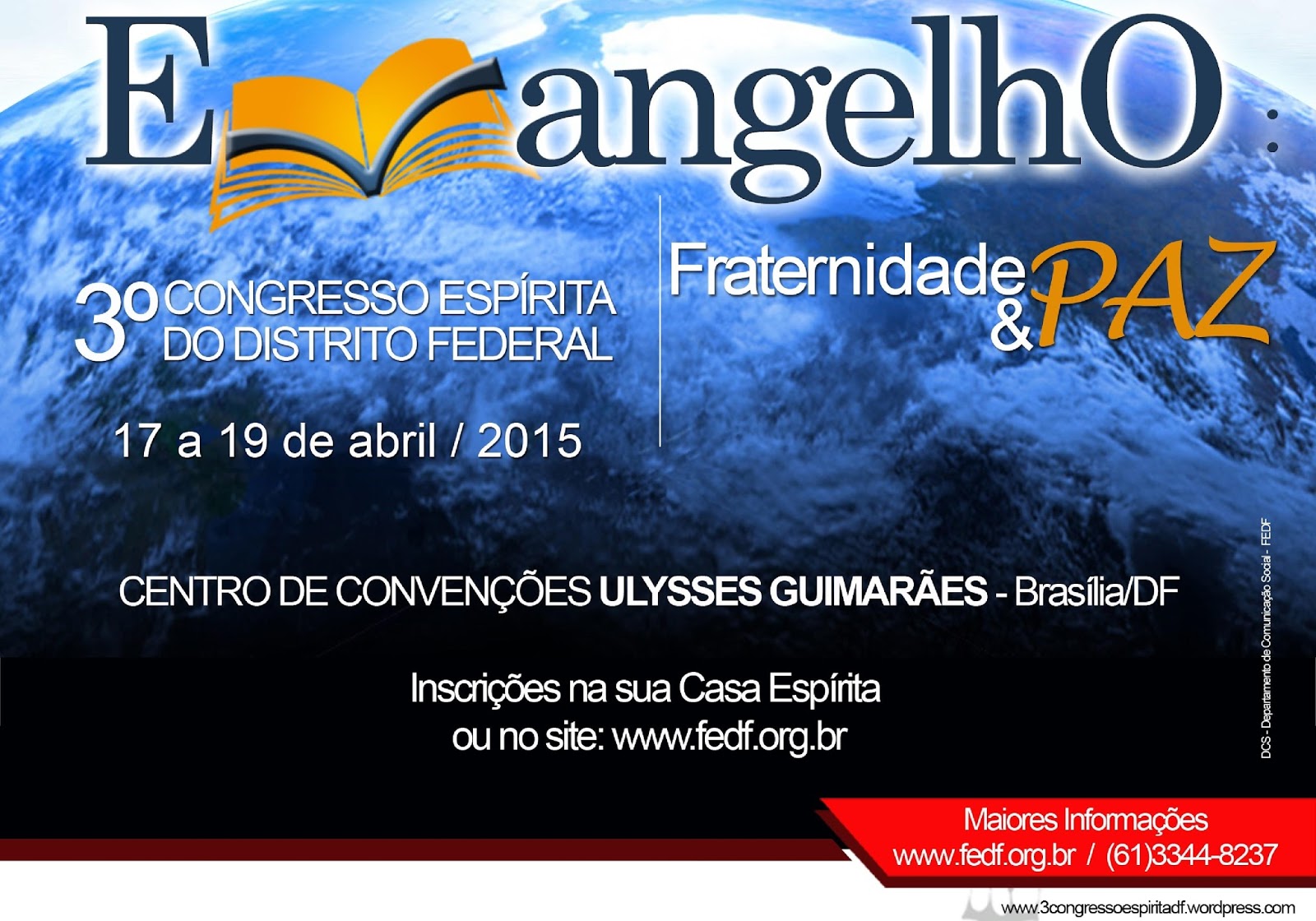 Lembrando: o 3º Congresso Espírita do DF será nos dias 17 de abril (sexta à noite), 18 (sábado pela manhã e tarde) e 19, domingo (pela manhã) no Centro de Convenções Ulysses Guimarães, em Brasília.