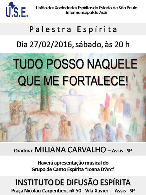 de São José do Rio Preto, no Centro Espírita Francisco Cândido Xavier, situado à Av. Alfredo Theodoro de Oliveira, 2195 - Solo Sagrado, São José do Rio Preto - SP, nesta quarta-feira, 24 de fevereiro, 20:00 h, e também para o cafezinho fraterno. Abraços.