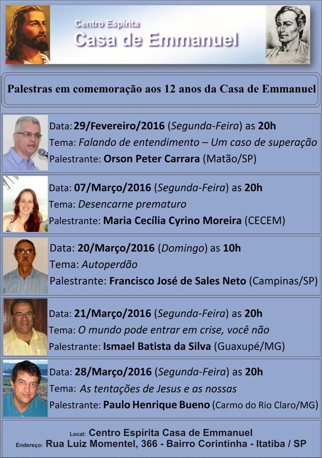 Programação comemorativa de 12 anos da Casa de Emanuel Itatiba, SP |