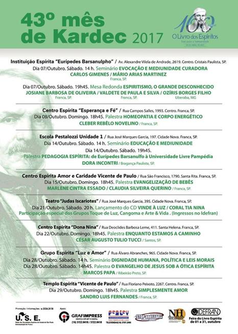 USEFRANCA União das Sociedades Espíritas Intermunicipal de Franca R. Major Claudiano, 2185 Centro, Franca, SP 1637243178 Curtir: www.facebook.com/usefranca
