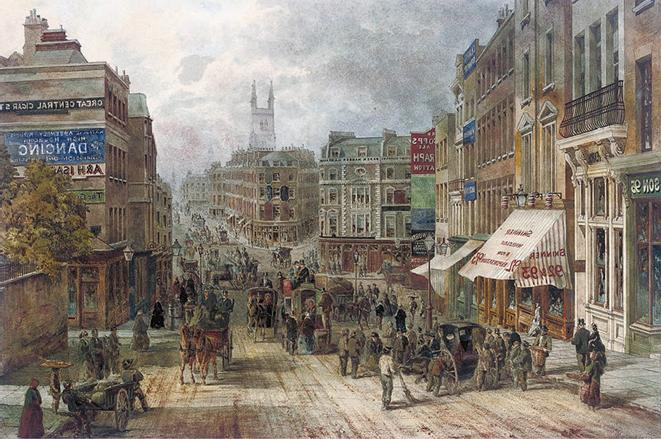 “Snow Hill” em Holborn, Londres. Imagem/fonte: https://commons.wikimedia.org/wiki/File:English_School,_19th_Century,_Snow_Hill,_Holburn,_London.jpg |