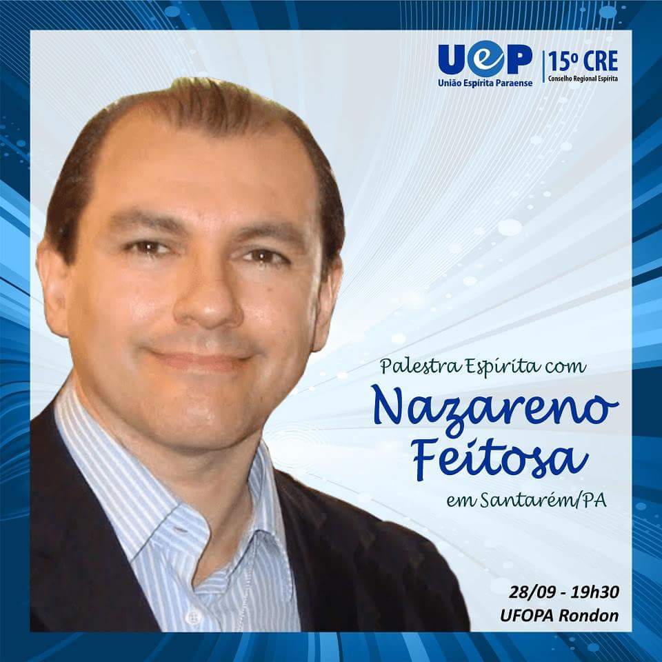 Nazareno Feitosa estará em Santarém/PA nos dias 28 e 29 de setembro de 2018. Na sexta-feira (28), a partir das 19h30, proferirá palestra pública na UFOPA Campus Rondon, com o tema "Desafios do Homem Contemporâneo e o Evangelho de Jesus"; e no sábado (29), ao longo de 8h-18h, conduzirá o V Encontro de Trabalhadores Espíritas do 15º Conselho Regional Espírita (CRE), com o tema: "Trabalhadores da Última Hora: Senhor, o que Queres que eu Faça?"