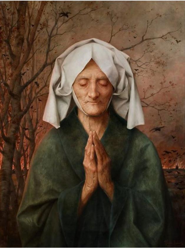 Velha orando. Óleo sobre tela por Theophile M. Lybaert. 1915. Imagem/fonte: https://commons.wikimedia.org/wiki/File:Theophile_Lybaert_-_Old_Flanders.jpeg |