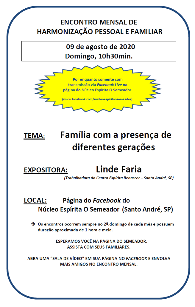 II Mês Espírita- agosto/2020- USE Ourinhos, SP Edição Virtual |