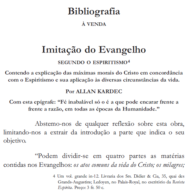 Imitação do Evangelho Segundo o Espiritismo Veja cópia da edição original de 1864 em Google Books |