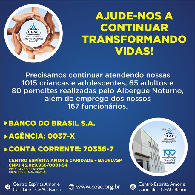 Colabore com o CEAC – Centro Espírita Amor e Caridade Bauru, SP |