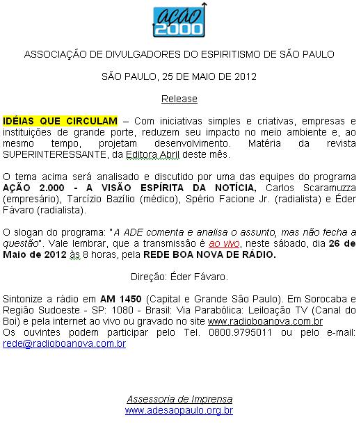 Programa Ação 2000 – A Visão Espírita da Notícia ADE/SP- RBN |