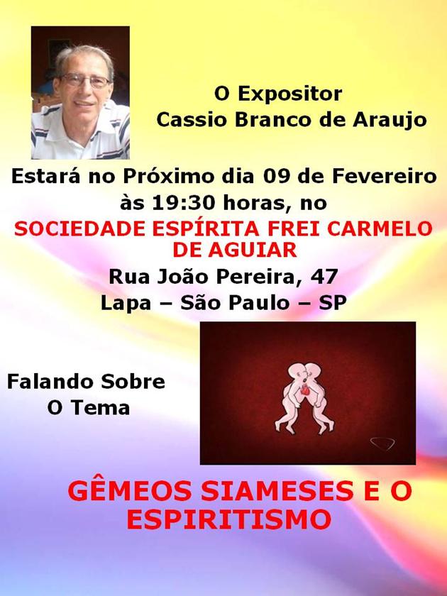 Contamos com a sua presença no dia 10 de março próximo e com a sua colaboração para divulgar nas suas redes sociais e no seu Centro Espírita (ANEXO).