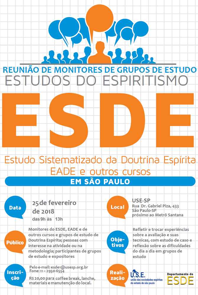Inscrições para as reuniões de estudo de O Evangelho Segundo o Espiritismo. São Paulo, SP |