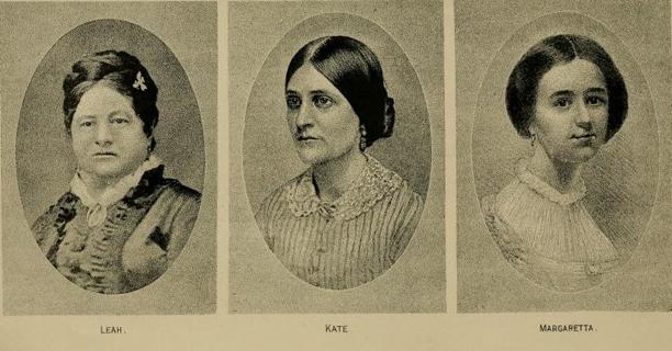 Irmãs Fox, protagonistas dos Fenômenos de Hydesville, EUA. Os espíritos se comunicavam através das batidas (tiptologia), uma espécie de alfabeto através das pancadas. Imagem/fonte: https://en.wikipedia.org/wiki/Fox_sisters#/media/File:Fox_sisters_mediums.png