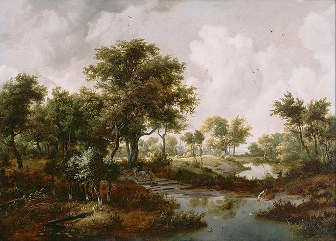 Uma paisagem arborizada. Óleo no painel de Meindert Hobbema Imagem/fonte: https://en.wikipedia.org/wiki/Meindert_Hobbema |