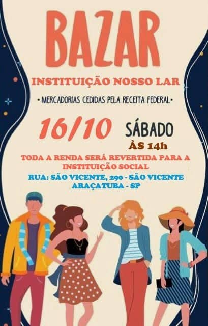 Bazar da Instituição Nosso Lar Sábado 16/10 |