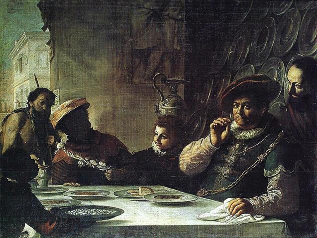La cena del ricco Epulone (O Banquete do Glutão Rico). Óleo sobre tela de Mattia Preti. Por volta de 1665. Imagem/fonte: https://ao.wikiqube.net/wiki/The_Banquet_of_the_Rich_Glutton Leia no link. |