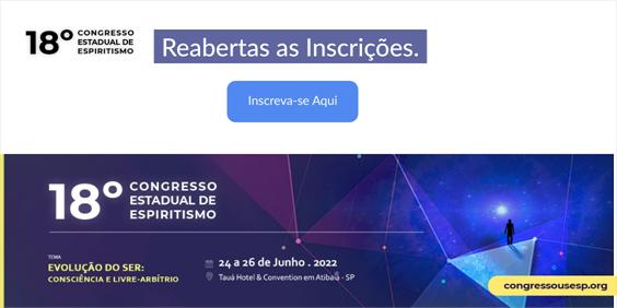 USE/SP. Reabertas as inscrições 18º. Congresso Estadual de Espiritismo |
