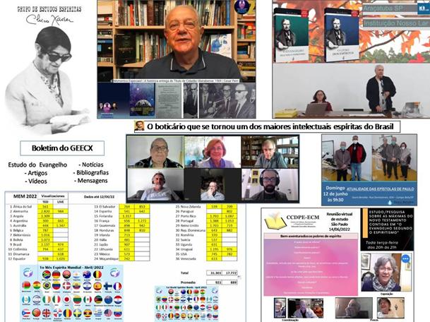 O pioneiro Mês Espírita Mundial virtual com milhares de acessos Na manhã do dia 13 de junho houve uma reunião on line para avaliação do desenvolvimento do “Mês Espírita Mundial”. Esse evento internacional virtual efetivado durante o mês de abril, contou com exposições de 120 expositores – incluindo palestras (lives) e TEDs (20 minutos) - de 36 países e em 10 vários idiomas, com traduções. Teve como objetivo a homenagem pelos 165 anos de publicação de “O livro dos espíritos”. Foi adotado o slogan: "O que nos une é muito maior do que aquilo que nos separa!", sendo um evento online inédito e gratuito, com mais de 20 horas empregando vários idiomas, diversos costumes, mas com o mesmo ideal. Transmissões nos idiomas de origem dos países e com os conteúdos legendados em: espanhol, francês, inglês e português. O evento foi apoiado pela Fundação Espírita André Luiz e transmitido pelo canal do Youtube da TV Mundo Maior. Na avaliação com dados apresentados por Júlio Sena (TV Mundo Maior) e Ruben de los Santos (Uruguai) e atuação de André Marouço (Portugal), Charles Kempf (França), Elsa Rossi (Reino Unido) e Cesar Perri (Brasil), analisou-se a quantificação sobre os acessos: 31.301 às TEDs e 17.772 às lives; houve um promédio de 921 acessos às TEDs e 889 acessos às lives. A sigla TED significa "Tecnologia, Entretenimento e Design", e surgiu de conferências rápidas em que esses temas são apresentados. Acesse as gravações pelo link: https://feal.com.br/mes-espirita-mundial/