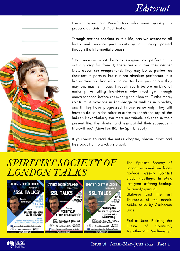 April-May-June 2022 | HOME (buss.org.uk) ☘️Kind Regards☘️ Elsa Rossi - www.elsarossi.com www.buss.org.uk Chairperson of British Union of Spiritist Societies www.buss.org.uk | www.fb.com/uk.buss Address: Room 4, 1st floor, Oxford House, Derbyshire Street, Bethnal Green, London, E2 6HG, England, UK UK - CIO, No. 1136512 2021 - 175th Leon Denis birthday - Let's Celebrate - Let's promote the creation of small family groups for the study of the Gospel at Home, that is the key for World Peace.☘️ P Please do not print this unless you really need to.