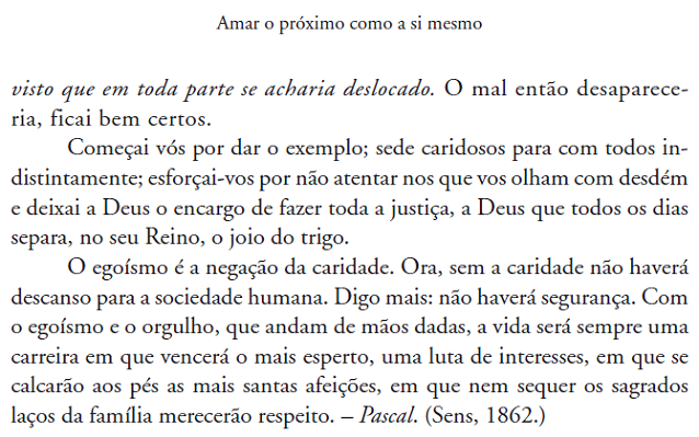 * Em “O Evangelho Segundo o Espiritismo”, capítulo XVI, intitulado “Não se pode servir a Deus e a Mamon”, em Instruções dos Espiritos, encontra-se a mensagem de Pascal, recebida na cidade de Genebra, Suiça, no ano de 1860 – “Emprego de riquezas”.