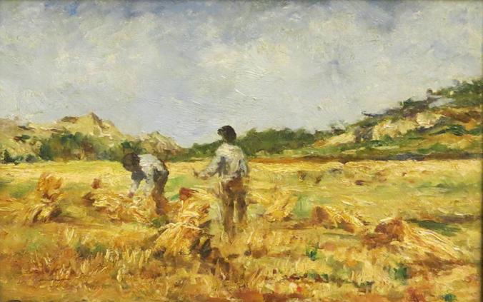 Ceifando o trigo. Óleo sobre madeira por António Carvalho da Silva Porto. Coleção do Museu Nacional de Soares dos Reis. Porto, Portugal. Em exposição na Pinacoteca do Estado de São Paulo. São Paulo, Brasil. Foto Ismael Gobbo. 02-07-2017.