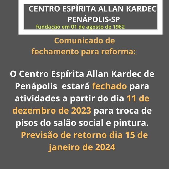 Comunicado do Centro Espírita Allan Kardec Penápolis, SP |