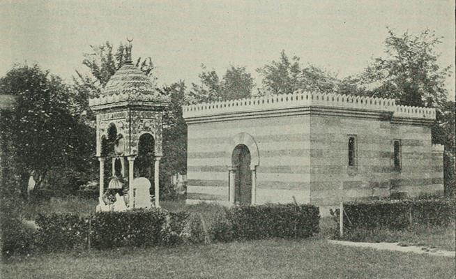 A Mesquita à direita e a sepultura à esquerda da Rainha de Oude. Cemitério Père Lachaise. Paris, França. 1896. Imagem/fonte: |
