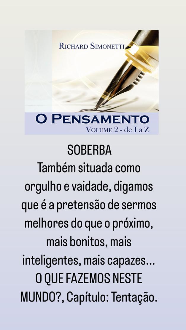 Reflexão, extraída do livro “Richard Simonetti - O Pensamento” - Vol 2 Organizado por Álvaro Pinto de Arruda. https://www.editoraceac.com.br/loja/produto/o-pensamento-vol-2 WhatsApp- Editora 14 99164-6875