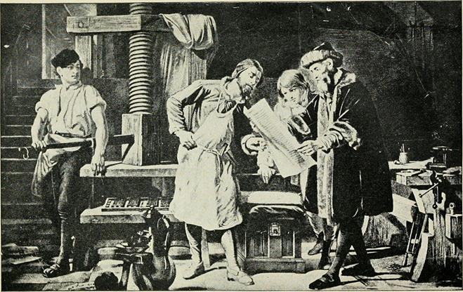 Johannes Gutenberg (1400-1468) Uma reconstituição em 1904 Imagem/fonte: https://en.wikipedia.org/wiki/Printing_press |