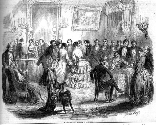 Mesas Girantes. Imagem publicada na revista Ilustration em 1853 para ilustrar um artigo intitulado: “Histoire of the semaine”. Imagem/fonte: https://commons.wikimedia.org/wiki/File:Tables_tournantes_1853.jpg |
