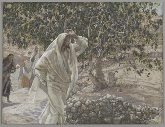 A Figueira Maldita Obra de James Tissot. Guache sobre grafite em papel vergê cinza. Do: Brooklyn Museum. Imagem/fonte: |