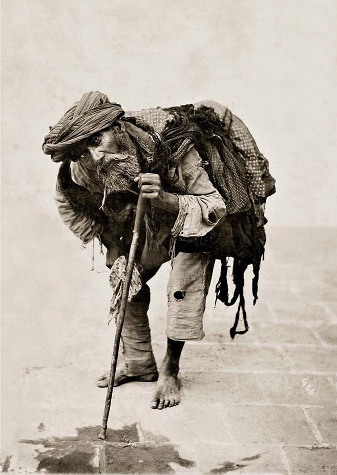 Mendigo em Teerã. Uma imagem de Antoin Sevruguin. Por volta de 1880. Imagem/fonte: https://commons.wikimedia.org/wiki/File:Bettler_in_Teheran_Sevruguin_02.jpg |