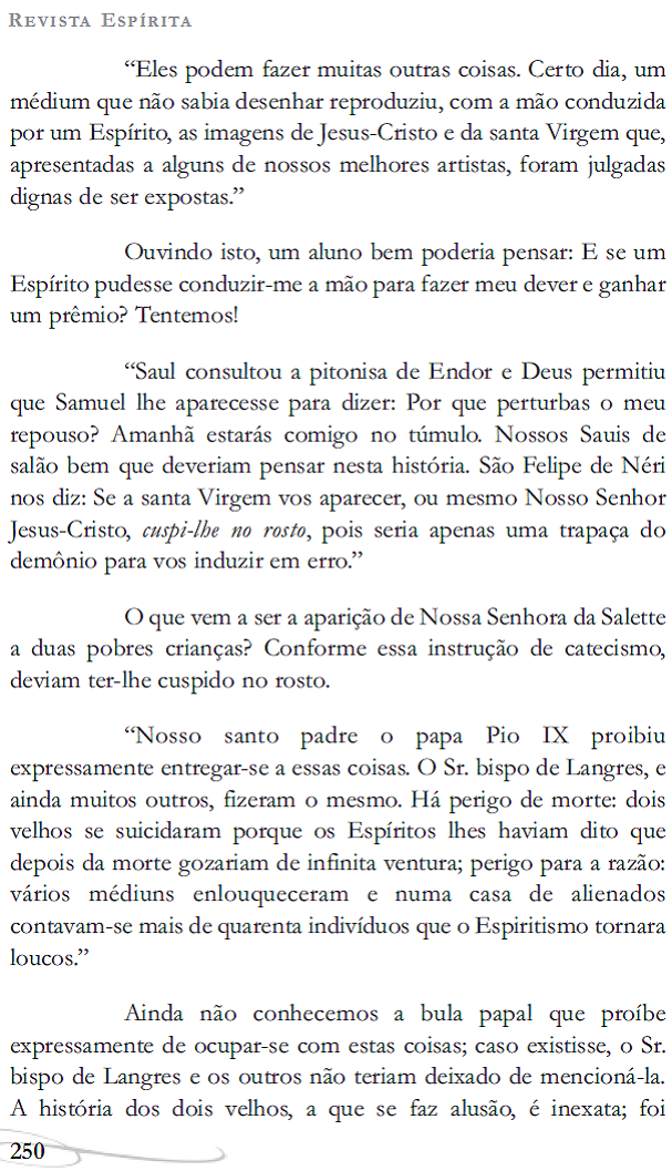 24 N.T.: Na 3ª. Edição francesa (1866), que serve de base a esta tradução, deixaram de figurar os cinco últimos parágrafos desta mensagem, bem como a assinatura do Espírito Erasto, que a ditou. Completamos a matéria que faltava em confronto com a 1ª. Edição do original francês (1864), arquivada na Biblioteca de Obras Raras da FEB, em Brasília.