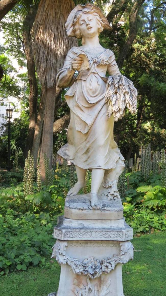 A escultura "Canto de la Cosechadora" é uma reprodução anônima feita em mármore que representa a figura de uma mulher trazendo consigo as colheitas. Sua expressão é de alegria, acompanhando seu retorno para casa com uma música alegórica para sua tarefa rural. Está localizado no Jardim Botânico. http://detallesdebuenosaires.blogspot.com.br/2011/03/escultura-canto-de-la-cosechadora.html |