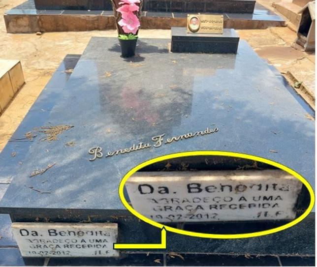 Benedita. Túmulo em Araçatuba com agradecimento.
