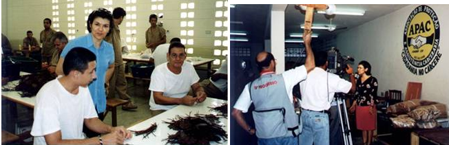A juíza Jacira Jacinto da Silva no Centro de Ressocialização de Birigui e concedendo entrevista na APAC. Seu projeto CIDADANIA NO CÁRCERE foi premiado pelo BNDES e Fundação Ford (Ismael Gobbo) |