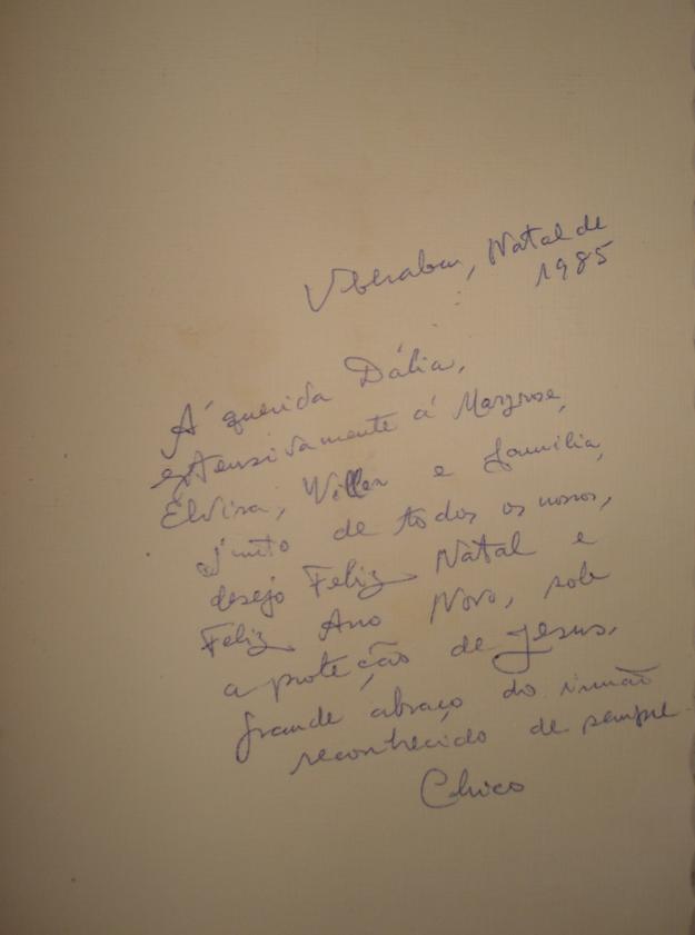 Cartão de Natal de Chico Xavier para sua irmã Cidália no ano de 1985. Reprodução do original por Ismael Gobbo |