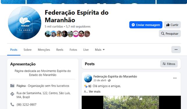 Clique aqui: https://www.facebook.com/federacaoespiritamaranhao/?locale=pt_BR