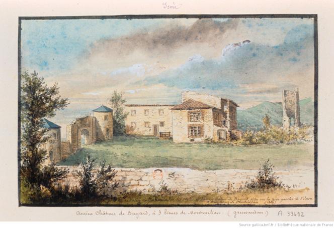 Vale Gresivaudan. Vista dos restos do antigo castelo de Bayard, localizado na margem esquerda do Isère, a três léguas de Montmélian: [desenho] |