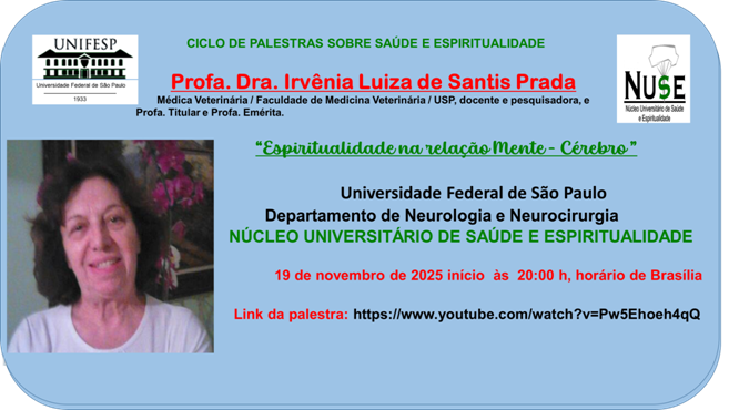 Palestra, online, em 19 de novembro às 20.00 h Dra. Irvênia Prada |