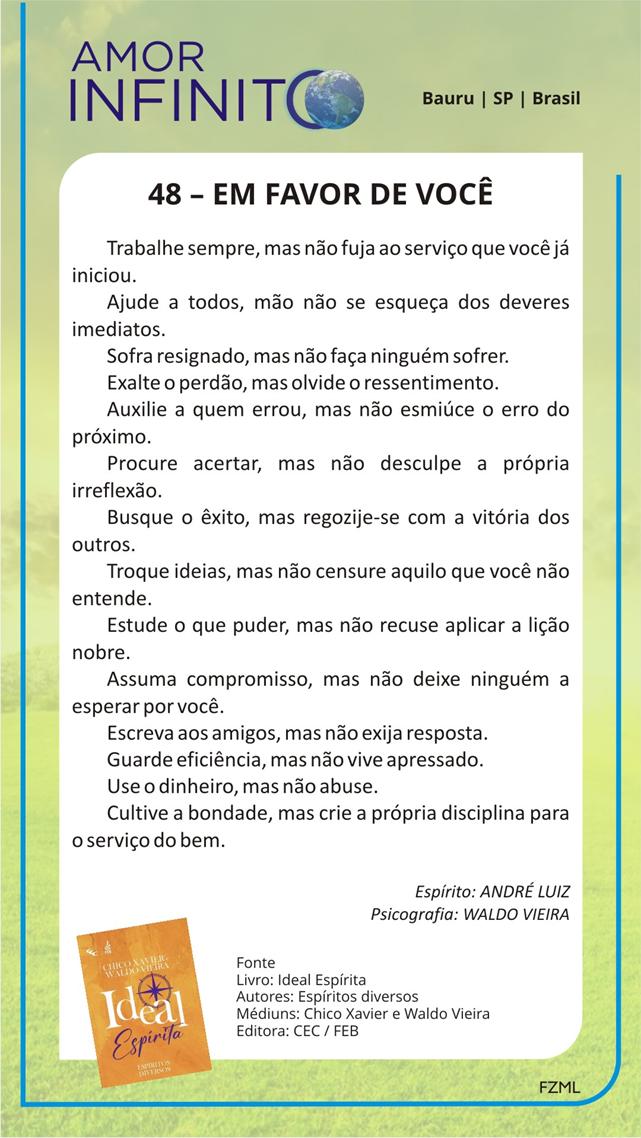 Pelo Espírito André Luiz. Psicografia de Francisco Cândido Xavier. Livro: Endereços da Paz. Lição nº 08. Página 32.