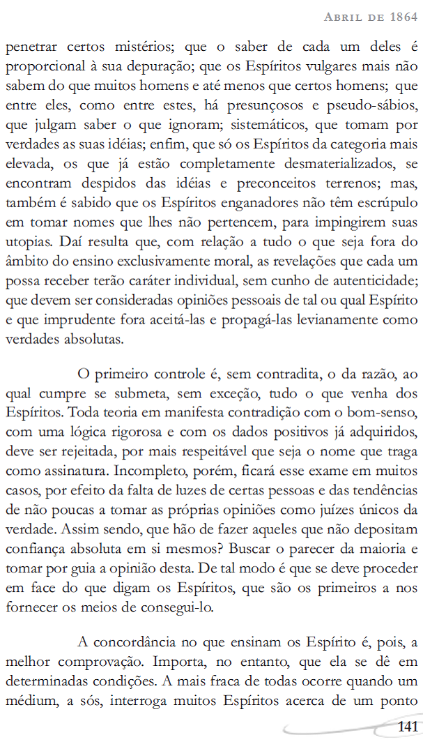 Uma só garantia séria existe para o ensino dos Espíritos: a concordância que haja entre as revelações que eles façam espontaneamente, servindo-se de grande número de médiuns estranhos uns aos outros e em vários lugares. (Allan Kardec, Revista Espírita, abril, 1864).