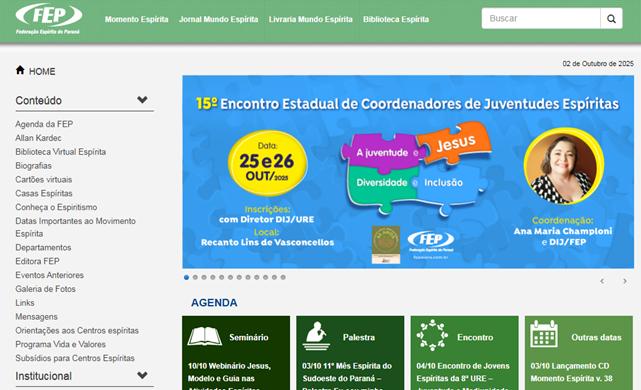 Boletim diário de Notícias do Movimento Espírita São Paulo, SP, sexta-feira, 03 de outubro de 2025. Compiladas por Ismael Gobbo |