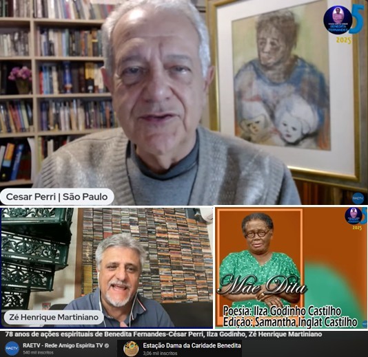 Programa especial transmitido no dia 10 de outubro, alusivo à passagem dos 78 anos da desencarnação de Benedita Fernandes (ocorrida no dia 09 de outubro de 1947, em Araçatuba); amigos vinculados à Estação Dama da Caridade Benedita Fernandes, apresentam produções sobre a histórica pioneira: música específica (Zé Henrique Martiniano, de Araraquara), Tributo à Mãe Dita (Ilza Godinho, Blumenau) e novos informes sobre o vulto e mensagem recente inédita (Cesar Perri, São Paulo). Houve homenagens a Sirlei Nogueira, recém desencarnado, destacado divulgador sobre Benedita. Transmissão pela Rede Amigo Espírita em parceria com a Estação Dama da Caridade Benedita Fernandes. Acesse pelo link: https://www.youtube.com/watch?v=5ZrqfZ-IFDo&t=49s