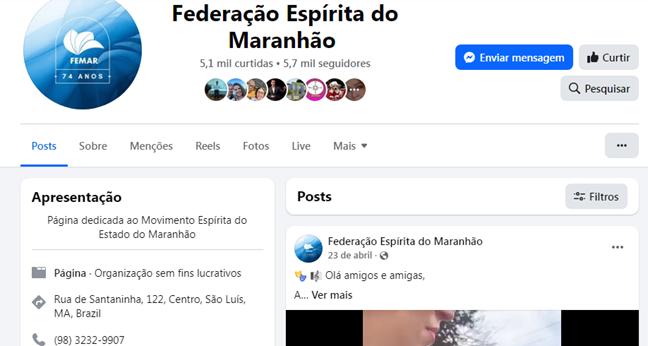 Clique aqui: https://www.facebook.com/federacaoespiritamaranhao/?locale=pt_BR