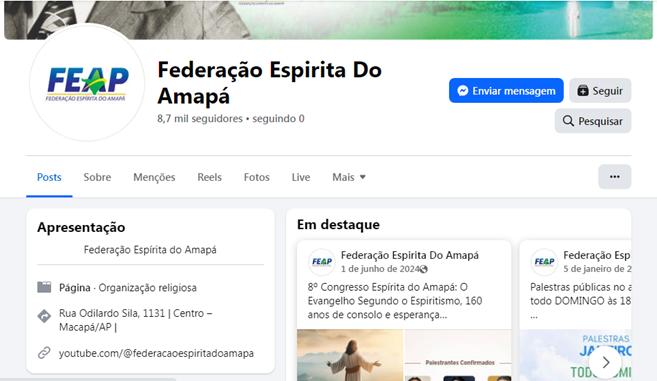 Clique aqui: https://www.facebook.com/federacaoespiritadoamapa/?locale=pt_BR