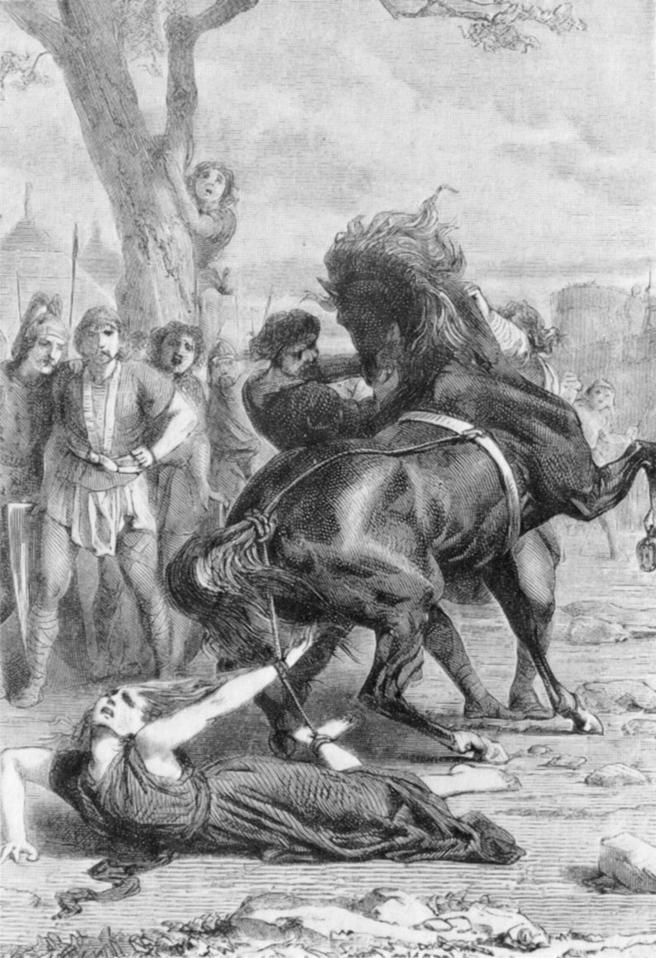 Brunilda (c. 543-613) foi uma rainha da Austrásia por casamento com o Merovingian rei Sigebert I da Austrásia , parte de Francia . Em sua carreira longa e complicada que ela governou os reinos francos orientais de Austrasia e Borgonha por três períodos como regente por seu filho Childeberto II a partir de 575 até 583; seu neto Theudebert II a partir de 595 até 599; e bisneto Sigebert em 613. O período foi marcado pela tensão entre a casa real e os nobres poderosos que disputam o poder. Brunilda era aparentemente um governante eficiente, mas este e sua personalidade forte trouxe em conflito com os seus nobres, a igreja e os outros merovíngios. Sua amarga disputa com Fredegunda , que assassinou a irmã de Brunilda Galswintha para substituí-la como a rainha do Reino de Soissons (c. 568), durou até a morte de Fredegunda em 597. Fredegund tinha marido de Brunilda assassinado, e Brunilda preso por um período. Ele foi continuado pelo filho de Fredegunda, Clotário II , que em 613 derrotou Brunilda na batalha e mandou que fosse executada por ser separadas por quatro cavalos. Fonte: https://pt.qwertyu.wiki/wiki/Brunhilda_of_Austrasia