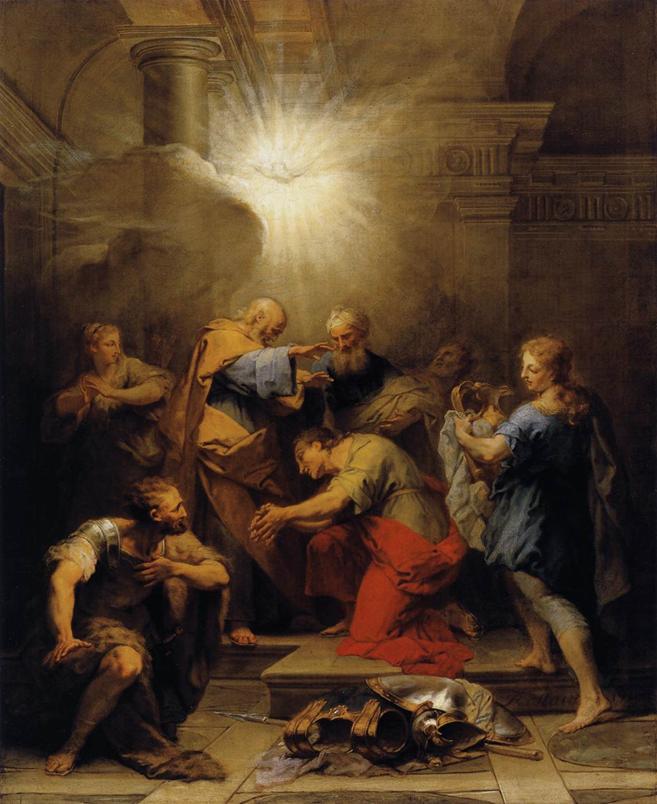 Ananias restaura a visão de Paulo. Óleo sobre tela por Jean II Restout. Imagem/fonte: |