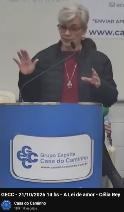 No dia 21 de outubro, na reunião pública da tarde, do Grupo Espírita Casa do Caminho (São Paulo), Célia Maria Rey de Carvalho abordou o tema “a lei do amor” (Cap. XI de “O evangelho segundo o espiritismo”). A reunião foi presidida por Inês Bareia. Acesse pelo link: https://www.youtube.com/watch?v=0azuw_ILT88